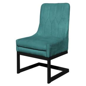 Cadeira Valentina Sala de Jantar Veludo Azul Turquesa Base Preta - Vallisa Decor