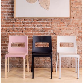 A Cadeira Vezo está disponível em quatro cores diferentes, em dois modelos distintos. Além disso, se você busca por uma opção mais sustentável, o modelo Eco está disponível na cor preta. Essa variedade de opções permite que você escolha a que mais combina com a decoração do seu ambiente, e ainda tenha a possibilidade de criar um espaço único e personalizado.