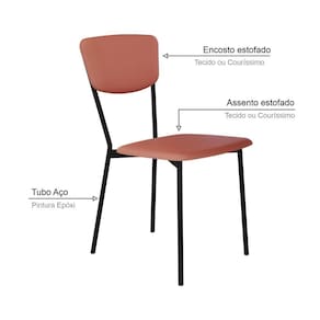 Cadeira Vintage Retrô Fixa C/4 Pés 425 X 505 X 830 Mm C/4 Un. Cn.marte Terra Rose Cn.marte Terra Rosê
