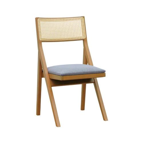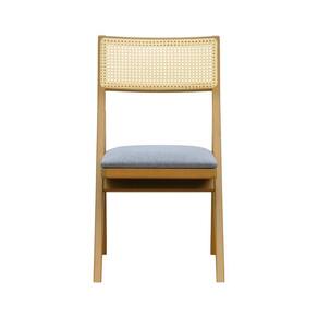 Cadeira Ypê Madeira Maciça E Telinha Natural - Natural Assento Estofado Linho Cinza Mescla Impermeável - Blush