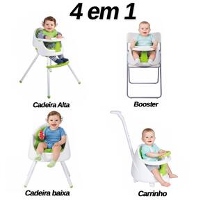 Versatilidade para cada etapa: Modo Refeição (6 meses+): Pode ser utilizada como cadeirão alto tradicional ou assento elevatório (booster) acoplado a uma cadeira comum. Modo Atividades (3 anos+): Transforma-se em uma cadeirinha baixa, ideal para desenhar, brincar e interagir à mesa. Modo Diversão (8 meses+): Base equipada com rodinhas e volante lúdico para entretenimento supervisionado dentro de casa.