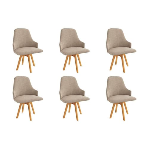 Cadeira Jantar Suria 1C002CA Premium Madeira Maciça Kit 6 Un Carvalho/Linho Bege Fendi Kappesberg