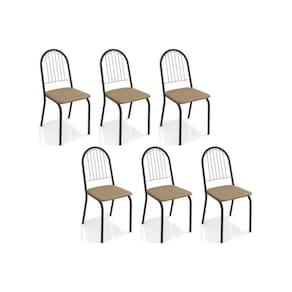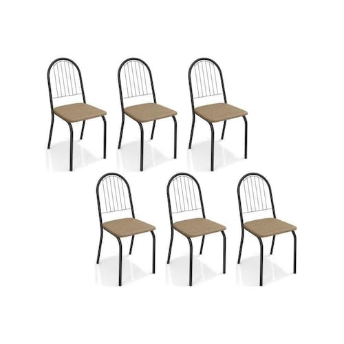Cadeiras De Cozinha Noruega C077 Kit 6 Un Preto Fosco/linho Capuccino - Kappesberg