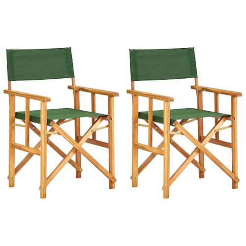 - Cor: cor de madeira natural e verde- - Material: madeira maciça de acácia com acabamento a óleo+ tecido (assento e encosto) - - Dimensões gerais: 21,6 ? x 22 ? x 34,6 ? (L x P x A) - Largura do assento: 18,5 ?- - Profundidade do assento: 19,2 ?- - Altura do assento do chão: 18,8 ?- - Altura do apoio de braço em relação ao solo: 24,8 ?- - Dobrável para fácil armazenamento e transporte - - A entrega inclui 2 cadeiras - - Tecido: poliéster: 100% -