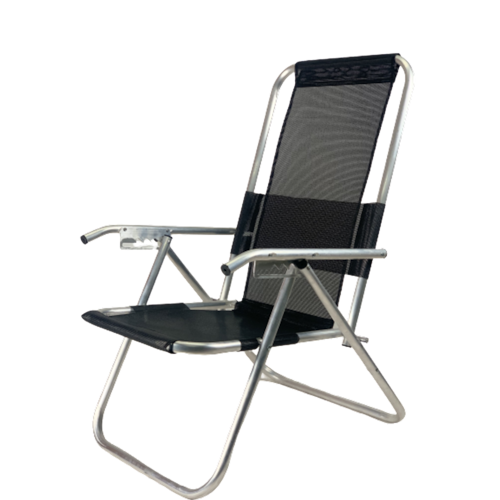 em alumínio de 7/8 polegadas com espessura de 1mm em alumínio em alumínio maciço em alumínio maciço em alumínio estrutura em pontos críticos para melhor resistência todas as peças em alumínio, não utilizamos todos os elementos em alumínio, não utilizamos em alumínio alumínio em alumínio reforçado e em alumínio melhor acabamento e resistência maior em largura e proporcionando um conforto melhor cadeira com 5 design de tecido : poliéster de qualidade revestido em PVC altura com reforço de tecido sem assento e sem encosto para 110KG