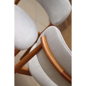 Particularidades da Cadeira Características: - Estrutura em Madeira Maciça Tauari; - Encosto e assento estofados; - Encosto anatômico; - Espuma com Densidade D-26; - Feltro de proteção nos pés; - Design moderno, sofisticado e diferenciado; - Baseado em conceitos sustentáveis; - Madeira altamente resistente;