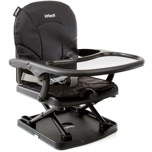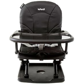Adapta-se facilmente as cadeiras comuns de adulto, com tiras de fixação para maior segurança, ajustável em 3 posições de altura, cintos de segurança para o bebê, bandeja removível e fechamento muito fácil e ultra-compacto com alça para transporte. Capa protetora do assento, acolchoada para maior conforto, impermeável, facilmente removível e lavável.
