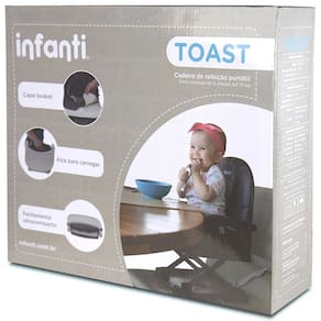 A cadeira de refeição portátil Toast da Infanti acompanha as refeições do bebê com muito mais praticidade para os pais, mesmo em ambientes menores, onde o melhor aproveitamento do espaço se faz necessário, para que o bebê tenha sempre o local exclusivo para a sua alimentação, sempre à mão, perfeitamente higienizado, em casa, restaurantes ou hotéis ou aonde for.