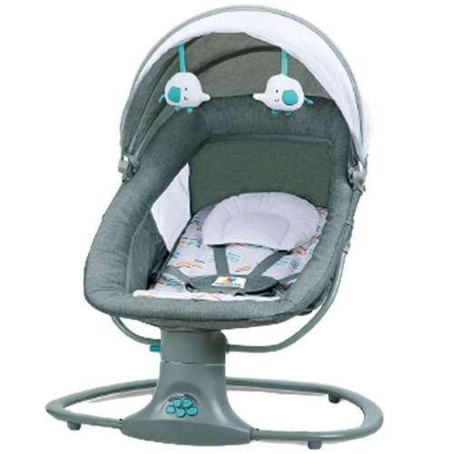 A Cadeira Techno Verde Estampada da Mastela tem movimento automático lateral, com timer de 15, 30 ou 45 minutos e conta também uma um dispositivo de trava para manter a cadeira em uma posição só. A cadeira conta com capota com mosquiteiro e móbile acoplado, com 2 brinquedos e é removível ou pode ser reclinada. Possui um fivela ajustável para reclinar o encosto de acordo com a posição desejada.