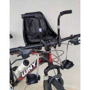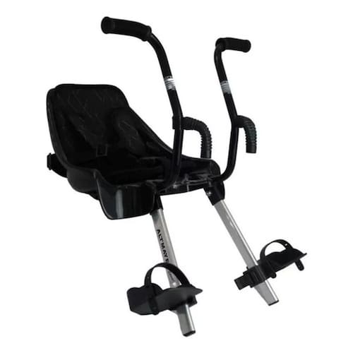 equ1p4da com cinto de 5 pontos para maior segurança; o assento é do tipo concha; ajuste de altura para os pés com bloqueio, tornando a ação rápida e simples; após a montagem do equipamento, não são necessárias ferramentas para a instalação na bicicleta, pois possui ajuste em y para encaixar no guidão.
