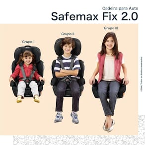 A Cadeirinha Infantil para carro SafeMax oferece conforto e praticidade sem deixar de lado a seguranca que voce ja conhece e confia. Para criancas de 9 a 36kg -Grupos I, II e III- ela conta com protecao lateral contra impactos -SIP- que fornece maior seguranca para a cabeca, corpo e quadris.