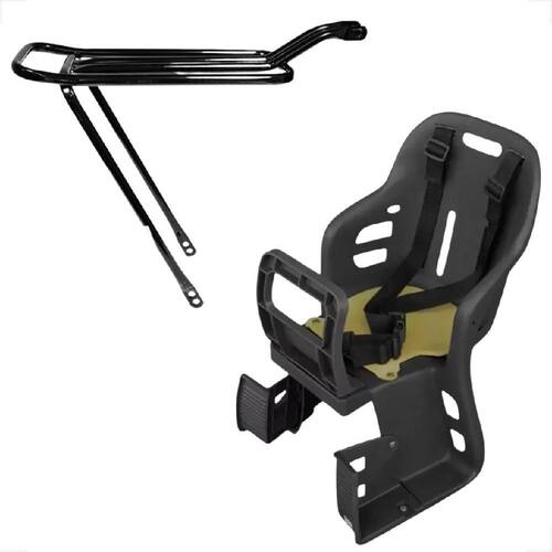 A Cadeira para transporte infantil é fabricada em plástico injetado em formato anatômico, possui cinto de segurança com fivela de engate rápido, almofada de acento em espuma, vem com suporte de instalação em bagageiros traseiros de bicicletas. Para maior conforto, a cadeirinha tem formato anatômico, com cantos arredondados, possui almofadas de espuma (poliuretano) no assento, possui apoios para os pés.