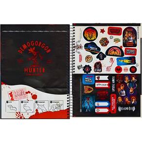 Capa dura com detalhes metalizados e parte interna decorada Bolsa de papel decorada Espiral colorido Folha de adesivos funcionais 16 matéria 256 folhas Formato: 200 mm x 275 mm Gramatura: 56 g/m² Perfeito para estudantes que desejam unir tecnologia, qualidade e um visual exclusivo inspirado no universo de Stranger Things.