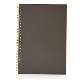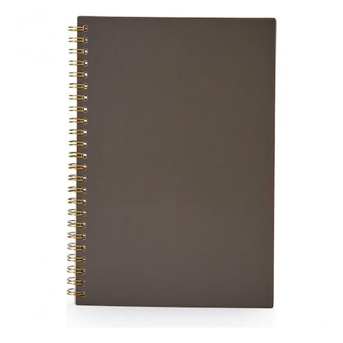 Descrição: Caderno A5 plástico com wire-o metálico. Capa em PP, contém aproximadamente 80 folhas brancas com pauta.