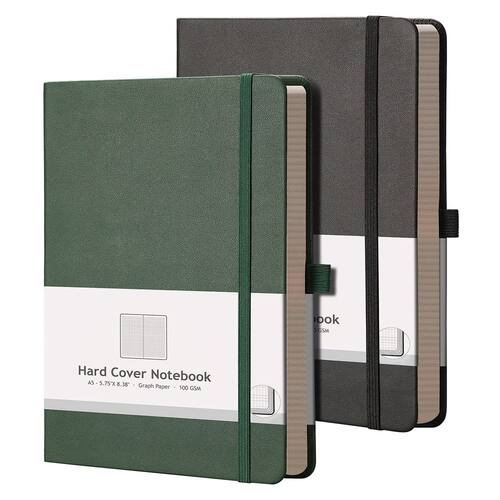 .... - Pacote com 2 cadernos de papel gráfico – Total vem com 2 cadernos de papel gráfico, 96 folhas/192 páginas por pacote, total de 192 folhas/384 páginas. Oferece amplo espaço para escrever! - Papel de qualidade 120GSM – Papel grosso de grade marfim sem ácido 120 g/m², as páginas são grossas o suficiente para você usar sua caneta, lápis ou marcador favorito, sem passar por manchas ou fantasmas. - Capa dura de couro PU resistente – Capa dura durável e suave resistente à água protege este caderno de grade do desgaste. A capa rígida de couro premium torna os cadernos mais duráveis e tocados confortavelmente. - Design de diário gráfico A5 - ?Páginas numeradas, conteúdo e 2 estênceis de diário gratuitos. ?Capa macia de couro PU durável, fácil de carregar. O bolso interno traseiro pode guardar notas, cartões de visita, pequenos dispositivos, etc. Faixa elástica, laço para suporte de caneta e 2 marcadores de livro - Ótimo uso – O gráfico pautado é ótimo para estudantes de matemática e ciências. Perfeito para gráficos, caderno de matemática infantil, caderno de quadro de âncora, diário de viagem, desenho de artistas, planejador de trabalho diário.