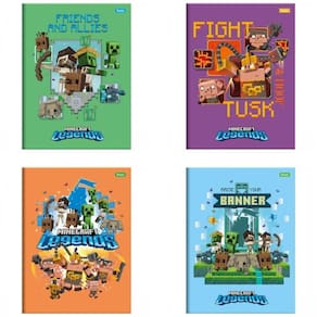- 1 Caderno Brochura Capa Dura 1/4 Pequeno Minecraft Legends 80 Folhas FORONI (estampa selecionada)
