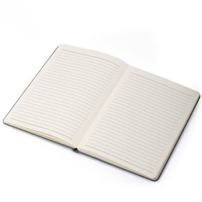 Capa dura em PU para maior durabilidade 80 folhas pautadas em tom bege para anotações organizadas Suporte para caneta integrado Dimensões: 21,3 x 14,5 x 1,5 cm Peso: 0,280g