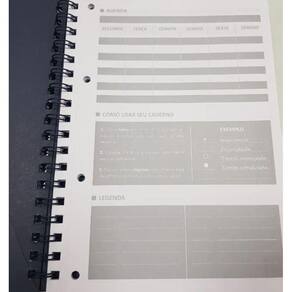 Folhas com microsserilha para fácil remoção, tamanho ideal para transporte, funciona como agenda, tem leganda, index e calendário. Completo