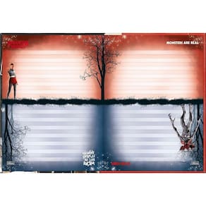 Capa dura com detalhes metalizados e parte interna decorada 1 matéria 160 folhas Formato: 176 mm x 239 mm Gramatura: 63 g/m² Perfeito para estudantes que desejam unir tecnologia, qualidade e um visual exclusivo inspirado no universo de Stranger Things.