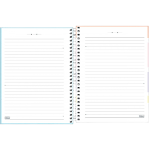 O Caderno Espiral Capa Plástica Colegial 1 Matéria Happy Azul 80 Folhas possui formato inovador e compacto, ideal para quem gosta de praticidade. Possui capa dura com a parte interna decorada, bolsa de papel decorada, folha com adesivos funcionais e folhas pautadas destacáveis.