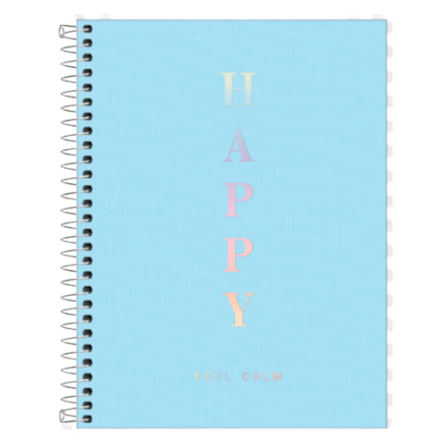 O Caderno Espiral Capa Plástica Colegial 1 Matéria Happy Azul 80 Folhas possui formato inovador e compacto, ideal para quem gosta de praticidade. Possui capa dura com a parte interna decorada, bolsa de papel decorada, folha com adesivos funcionais e folhas pautadas destacáveis.
