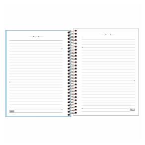 - Caderno espiral com 160 folhas - Capa plástica com detalhes metalizados - Cor da capa: azul - Miolo pautado - Bolsa de papel decorada - Folha de adesivos - Formato: 17,7x24 cm Ean: 7891027307035