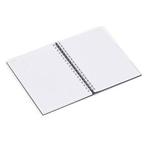 Caderno capa dura. São 96 folhas, 192 páginas com 8 páginas iniciais padrão sendo dados pessoais, calendário, planejamento anual e trimestral.
