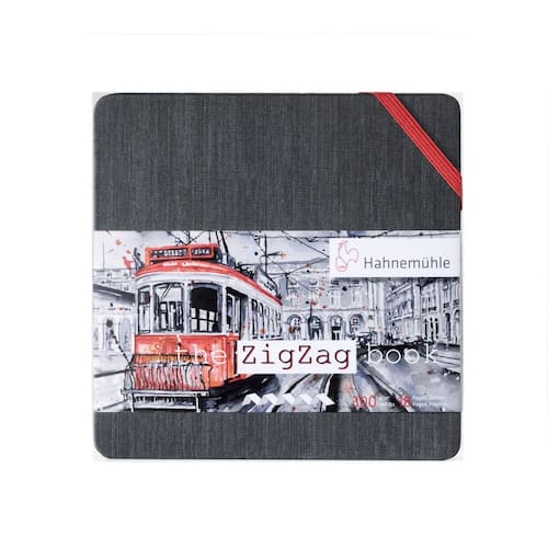 Caderno de aquarela dobrável em acordeão Zig Zag Book de 300 g/m², 5,5 x 5,5, 18 fls. - Papel aquarela - Branco natural - Textura fina - Imagens apenas ilustrativas