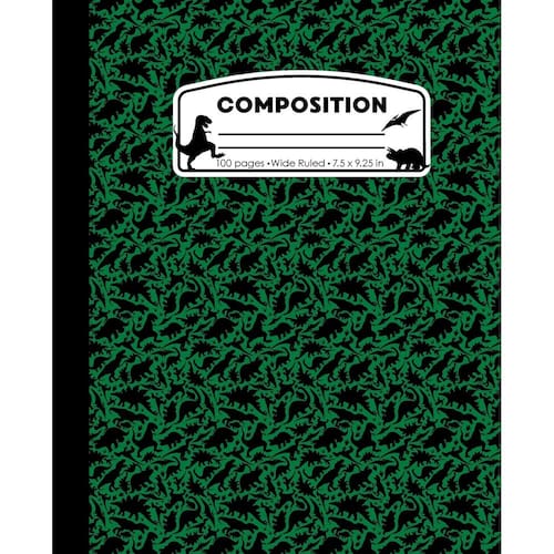 Composição: Caderno de composição em mármore verde dinossauro. Livro Dino T-Rex Wide Ruled, 7,5 x 9,25 polegadas, 100 páginas, diário para meninas, meninos, crianças, estudantes do ensino fundamental e professores
