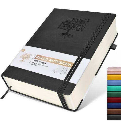 Caderno de diário forrado - transformará sua vida de mais maneiras do que você pode imaginar - ?365 páginas e diário grosso de 100 gsm?Caderno pautado clássico universitário espacial de 8 mm, total de 365 páginas, inclui 64 páginas perfuradas. Papel marfim leve sem ácido de 100 g/m² mais espesso do que o normal, não causa sangramento, fantasma ou manchas e é adequado para a maioria dos tipos de canetas. - Caderno de couro de capa dura: feito de couro vegano de alta qualidade, nenhum animal foi ferido. A capa dura durável e resistente à água protege o interior da página melhor do que uma capa macia e oferece uma superfície de escrita confortável. A "árvore da vida" simboliza vitalidade tenaz. Não importa quais dificuldades e obstáculos você enfrenta, você pode enfrentá-lo com firmeza. - Caderno de diário forrado atualizado: vem com 1 faixa de fecho elástico e 1 faixa elástica para marcador, mais estável. Um bolso interno expansível para manter o controle de cartões de compromisso, notas, recibos e muito mais. 1 presente de adesivos multicoloridos para classificação e marcação de papéis. - ?Caderno plano de 180°?O design plano de 180° torna a escrita mais fácil, a leitura mais conveniente e as anotações mais eficientes. Ao mesmo tempo, o caderno de capa dura é projetado com 1 faixa de fecho elástico e 1 faixa elástica para marcador. para fechá-lo firmemente para proteger seu conteúdo, e o papel interno não será enrolado e mantido plano. - ?Ótimo uso? Caderno pautado universitário perfeito para executivos de negócios, escritório, trabalho, casa, faculdade, estudantes, adultos, cientistas e pessoas em muitos outros campos. Perfeito para viajantes, empresários, estudantes para escrever diários, diários, diários pessoais, diários de viagem, cadernos de trabalho ou para fazer anotações em aulas ou reuniões da faculdade.