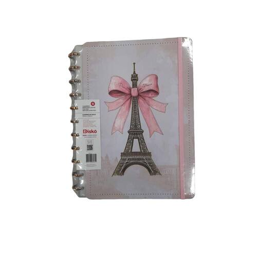 Caderno de Disco Grande - 80 Folhas Paris é totalmente reposicionável: permite adicionar, remover e reorganizar as folhas com liberdade total. Seu sistema inovador de encadernação utiliza discos para prender as páginas, unindo praticidade, estilo e funcionalidade em um só produto.