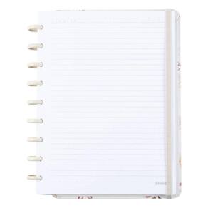 O Caderno de Disco Medio 80 Folhas - Laços é totalmente reposicionável: permite adicionar, remover e reorganizar as folhas com liberdade total. Seu sistema inovador de encadernação utiliza discos para prender as páginas, unindo praticidade, estilo e funcionalidade em um só produto.