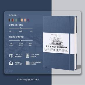 BEECHMORE BOOKS Caderno de esboço, A4 21,6 x 29 cm em branco para desenhar, pintar e desenhar, 156 páginas de papel grosso 160 gsm, caderno de arte de couro de capa dura, embalado para presentes - O que está dentro da caixa: cada caderno grande vem com 156 páginas/78 folhas de papel grosso e luxuoso. As páginas nítidas em creme marfim são resistentes a vazamentos, apagamento de tinta, fantasmas e sombreamento. Com 160 g/m², nosso papel mais espesso do que a maioria garante que cada página permaneça impecável. - Projetado para a perfeição: nosso processo de encadernação interno garante durabilidade. O caderno de desenho extra grande tamanho A4 é feito com uma capa de couro vegano, páginas perfuradas, fecho elástico seguro, fita de marcador sutil, encadernação plana de 180° e um bolso traseiro profundo. - Presente perfeito: cada livro de arte Beechmore é apresentado em nossa caixa de assinatura, tornando-o um presente de Natal ideal para artistas, estudantes, designers ou entusiastas de desenho. É um presente atencioso para mentes criativas. - Design britânico: encadernado em couro vegano especialmente proveniente, tátil, cada livro Beechmore é meticulosamente projetado e testado em cores em nosso estúdio em Londres. Temos orgulho em criar cadernos de esboços elegantes e atemporais inspirados no estilo britânico clássico e sofisticação discreta. - Qualidade excepcional: a atenção meticulosa do livro de arte Beechmore aos detalhes se estende ao seu artesanato superior. As páginas são encadernadas com fios, garantindo durabilidade duradoura, enquanto a elegante capa de couro vegano e os elementos de design atenciosos a tornam uma escolha de destaque para artistas e criativos.
