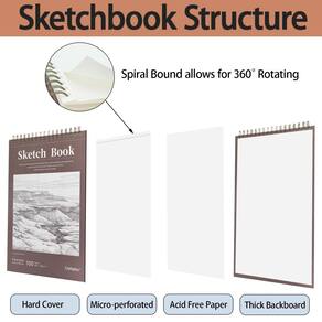 Especificações: - Material: papel de 30,8 kg (100 g/?) Incluído na embalagem: 2 cadernos de desenho Crehatos (não inclui acessórios) - Caderno de desenho de capa dura premium: o papel de desenho sem ácido pode suportar retrabalhos e apagamentos repetidos, a capa grossa e a tabela pesada ajudam você a deixar seu papel de arte plano, mesmo se você estiver esboçando em movimento. - 100 folhas de papel de esboço: mede 23 x 30 cm, cada bloco de desenho contém 100 folhas finamente texturizadas; as folhas, que têm uma espessura de 30,8 kg/100 gsm, são perfeitas para esboçar devido à sua superfície lisa, mas ligeiramente granulada. - Bloco de desenho com encadernação em espiral superior: vire facilmente as páginas com encadernação em espiral dupla, a espiral está na parte superior, o que facilita o desenho com a mão esquerda ou direita confortavelmente; caderno de desenho perfeito para amadores, profissionais e estudantes. - Remova as folhas facilmente: caderno de desenho de arte com papel microperfurado, permite que você remova folhas fiéis facilmente sem rasgar acidentalmente sua obra de arte finalizada; é uma ótima opção para esboçar, escrever e desenhar. - Bom para mídia seca: o papel de esboço tem textura fina que agarra muito bem a mídia seca, adequado para lápis, canetas, carvões, pastéis, giz de cera e muito mais, não é adequado para mídia úmida como marcadores, aquarela ou tintas acrílicas.