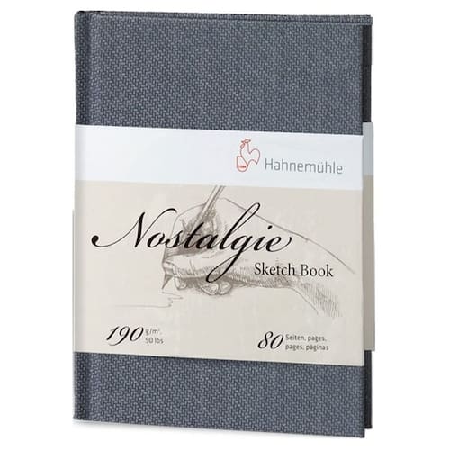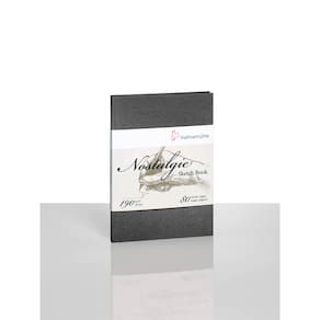 Este anúncio é para um (1) caderno de esboços de capa dura Hahnemuhle Nostalgie Sketch 190gsm 80pg A5 20,8 x 14,7 cm. A costura da linha contribui para uma encadernação sólida e um bom nivelamento dos lençóis. Isso também garante que esboços e desenhos de dupla face na dobra também possam ser criados sem problemas. Com uma capa cor antracite com uma estrutura de linho, o livro é resistente e agradável ao toque. - Papel de desenho - 100% alfa-celulose - Superfície lisa