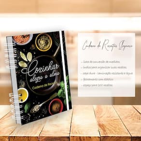 Detalhes do Produto : - 01 Página conversão de medidas - Índice para organizar 200 receitas - Todas a folhas são numeradas e idênticas frente e verso você pode colocar uma receita por pagina ou utilizar mais de uma se for necessário. - Capa Dura com Laminação Brilho Bopp ajuda a proteger contra umidade e sujeiras - Medidas da capa 15,5 x 21 cm - Tamanho interior A5 15 cm x 21cm - Encadernação Wire - o 2x1 - Acabamento : Elástico para fechamento - 200 páginas / 75g Marca: Nisti Print