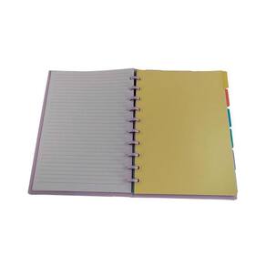 Características; Caderno de disco com capa PP 80 folhas pautadas 70g 6 divisórias Marca: Yins Paper Diversas cores