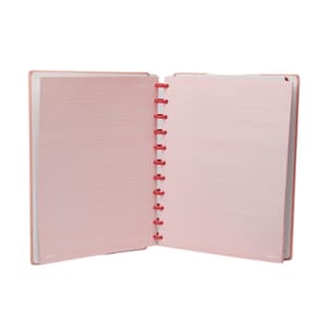 Caderno Disko All Peach G 210x280mm c/80fls DK21D250 Conheça o caderno Diskô, um caderno prático e personalizável que se adapta às suas necessidades, possibilitando adicionar, remover e reorganizar as folhas como quiser. Possui um sistema de encadernação inovador, que usa discos para prender as folhas do seu caderno.
