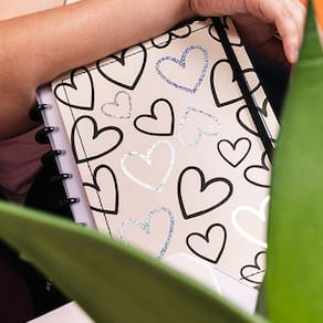 Caderno Disko Loves M 190x255mm 80fls DK22E276 Conheça o caderno Diskô, um caderno prático e personalizável que se adapta às suas necessidades, possibilitando adicionar, remover e reorganizar as folhas como quiser. Possui um sistema de encadernação inovador, que usa discos para prender as folhas do seu caderno.