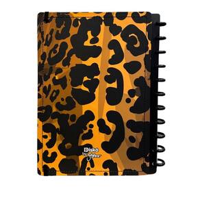 Caderno Disko Onça G 210x280mm c/80fls Conheça o caderno Diskô, um caderno prático e personalizável que se adapta às suas necessidades, possibilitando adicionar, remover e reorganizar as folhas como quiser. Possui um sistema de encadernação inovador, que usa discos para prender as folhas do seu caderno.