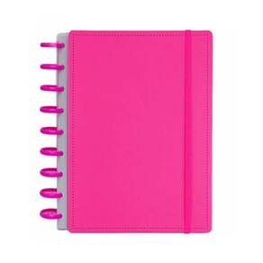 Caderno Disko Pink M 190x255mm 80fls DK22C218 Conheça o caderno Diskô, um caderno prático e personalizável que se adapta às suas necessidades, possibilitando adicionar, remover e reorganizar as folhas como quiser. Possui um sistema de encadernação inovador, que usa discos para prender as folhas do seu caderno.