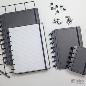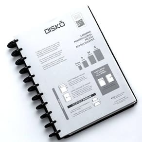 Conheça o caderno Diskô, um caderno prático e personalizável que se adapta às suas necessidades, possibilitando adicionar, remover e reorganizar as folhas como quiser. Possui um sistema de encadernação inovador, que usa discos para prender as folhas do seu caderno.