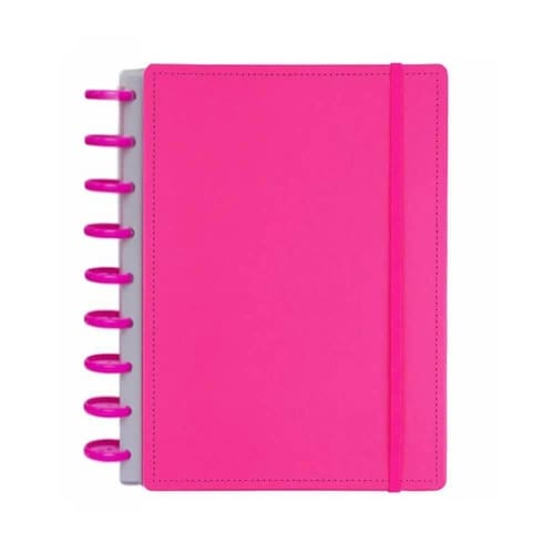 Caderno Disko Pink M 190x255mm 80fls DK22C218 Conheça o caderno Diskô, um caderno prático e personalizável que se adapta às suas necessidades, possibilitando adicionar, remover e reorganizar as folhas como quiser. Possui um sistema de encadernação inovador, que usa discos para prender as folhas do seu caderno.
