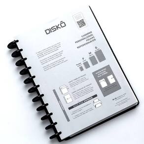 Caderno Disko Sindrome de Down M 190x255mm 80fls DK22D255 Conheça o caderno Diskô, um caderno prático e personalizável que se adapta às suas necessidades, possibilitando adicionar, remover e reorganizar as folhas como quiser. Possui um sistema de encadernação inovador, que usa discos para prender as folhas do seu caderno.