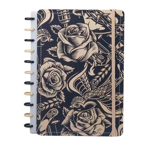 Caderno Disko Tatto G 210x280mm c/80fls Conheça o caderno Diskô, um caderno prático e personalizável que se adapta às suas necessidades, possibilitando adicionar, remover e reorganizar as folhas como quiser. Possui um sistema de encadernação inovador, que usa discos para prender as folhas do seu caderno.