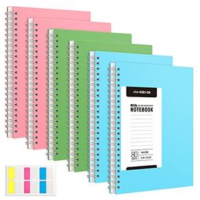 Caderno espiral AHGXG, pacote com 6 — cadernos espirais pequenos A5 para trabalho, 5,7" x 8,22", papel pautado universitário de 100 g/m2 de espessura, diários espirais de 160 páginas para mulheres e homens, material escolar, rosa, verde, azul