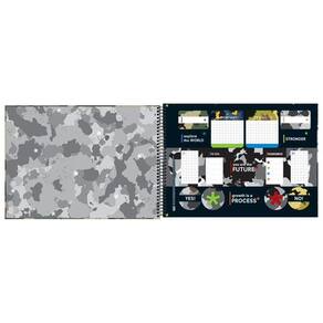 O Caderno Espiral Capa Dura 1/4 Hide 80 Folhas possui capa dura com a parte interna decorada, folhas pautadas e espiral colorido. Ideal para o dia a dia.