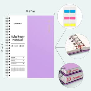 EMSHOI Caderno espiral A4 Caderno pautado universitário, 28,4 cm x 21 cm, 300 páginas, papel grosso de 100 g/m², capa mole impermeável, encadernação de fio duplo, notas adesivas, roxo - Caderno grosso de 300 páginas: o caderno forrado EMSHOI oferece 300 páginas (150 folhas) em tamanho A4 (28,4 cm x 21 cm), oferecendo amplo espaço para todas as suas anotações em um local conveniente, eliminando a necessidade de vários diários. Cada página possui espaçamento de linha de 7 mm para escrever - Papel grosso de 100 g/m2: o papel sem ácido de 100 g/m² de espessura evita que a tinta vaze e oferece uma experiência de escrita confortável em ambos os lados de cada página - Capa de PVC à prova d'água: o caderno pautado universitário possui uma capa impermeável com padrão de coruja em para atender às suas necessidades de classificação, protegendo páginas e permitindo escrever ou desenhar enquanto estiver em pé - Encadernação espiral forte: a encadernação espiral resistente garante fácil virada da página, fica plana a 180°, vira 360° e permite fácil remoção de páginas, acomodando usuários destros e canhotos - Uso versátil: como um diário ou diário para ideias de brainstorming, escrita criativa, rabiscos, desenhos e muito mais. O design de alta qualidade o torna um presente atencioso para amigos, familiares, colegas de classe e colegas