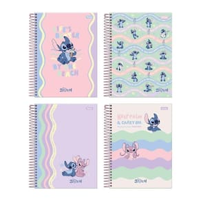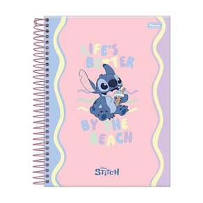 Características Adicionais: Formato prático Colegial: 177 mm X 240 mm Espiral durável com revestimento em nylon Possui 80 folhas de alta qualidade (63g/m²) Capa feita em Papelão e Papel Couchê resistente Capa dura com design exclusivo do personagem Stitch Caderno Colegial de 1 matéria ideal para o uso diário Acompanha bolsa plástica e folha de adesivos temáticos