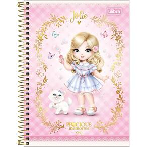 O Caderno Espiral 1/4 Jolie 80 folhas possui capa dura, parte interna decorada, folhas pautadas decoradas e espiral colorido. Ideal para o dia a dia.